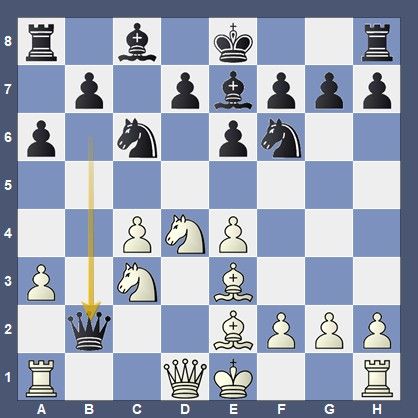 Nach 9…Dxb2?? 10.Sa4! war die Dame weg. Der Rest war Schweigen: 1-0